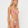 Our classic triangle top has been refreshed with a tropical print. The Aspen is a versatile bikini that has ties around the neck + back so you can style it multiple ways. Triangle Top Halter Tie Around Neck Tie Around Back Size XS-XL 83% Micro Nylon, 17% Spandex Style # LSAST23P