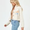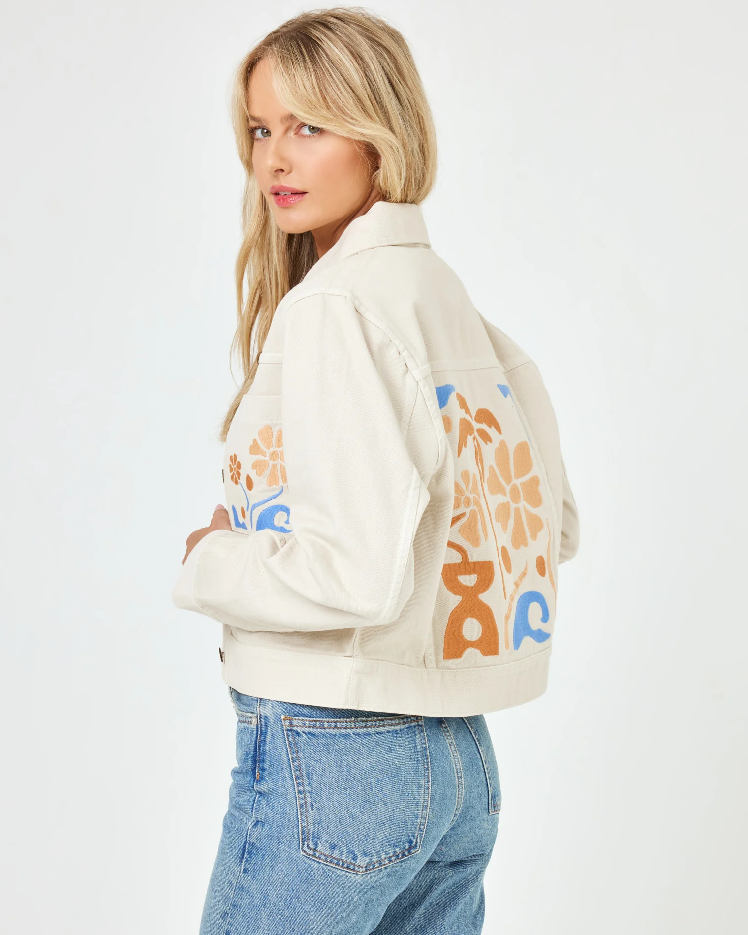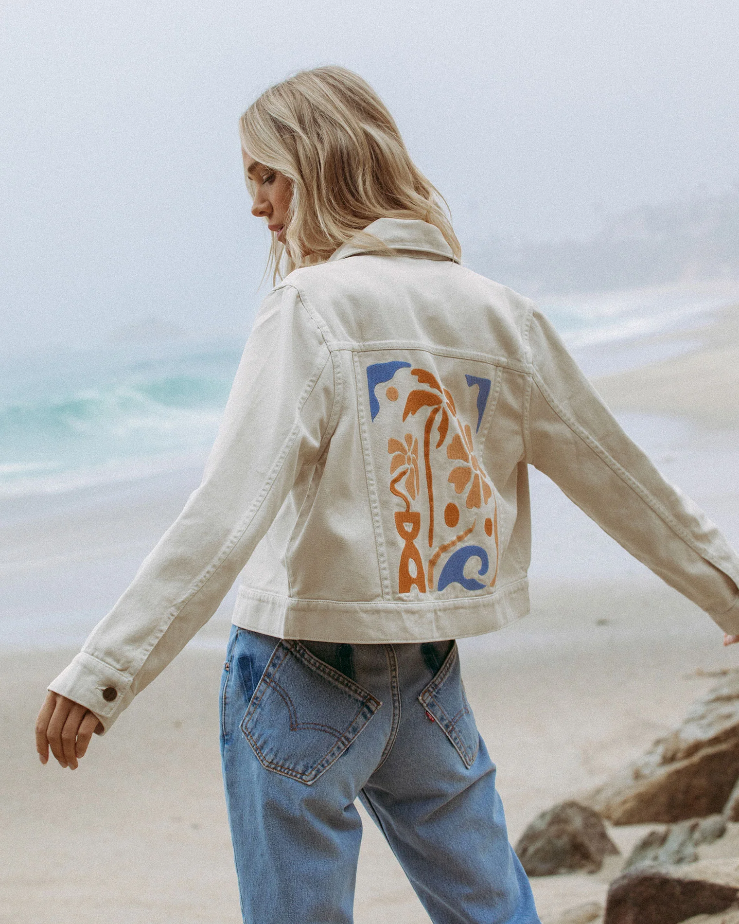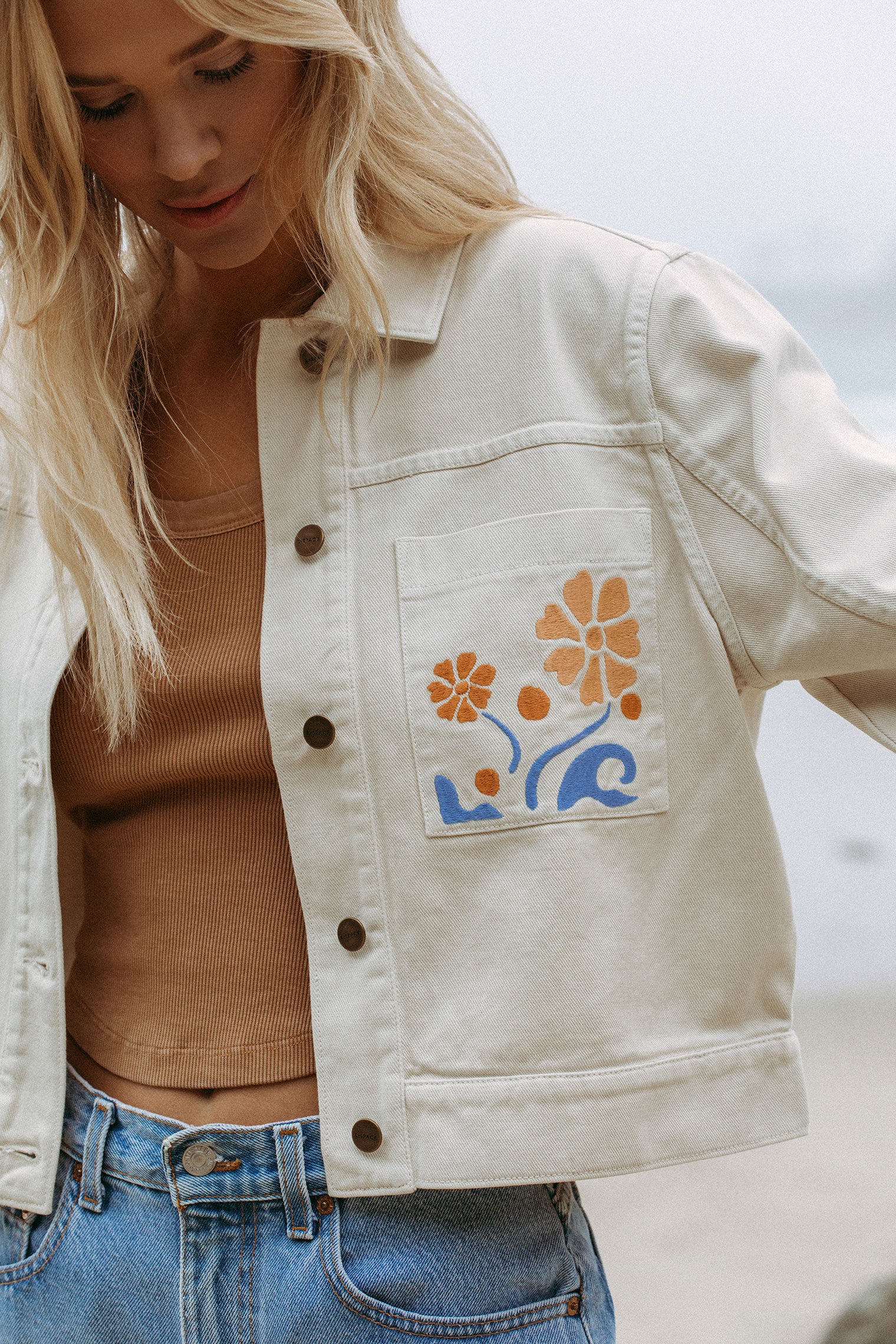 The cotton denim Capri Jacket is the perfect layering piece. Its cropped silhouette, LSPACE logo buttons, and detailed embroidery on the back and front pocket make this jacket a special piece for your closet. Wear it with a ribbed dress or your favorite pair of denim. Cropped Jacket Cotton Denim Button Down L Space Logo Buttons Buttons at Wrist Cuff Breast Pocket Embroidery Back Embroidery Size XS-XL 100% Cotton Like all delicates, shape, color and fit are best preserved if hand washed in cold water. Lay flat to dry. Style # CAPJA24 Model Measurements: Lura, size S – Height 5’9, Bust 32″, Waist 24″, Hips 34″