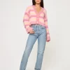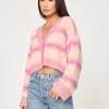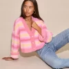 From morning beach walks to chilly nights by the fire, the Daybreak Sweater will be your constant companion as you transition from season to season. This cropped sweater comes in the yummiest shade of striped sherbet hues. Its relaxed silhouette and three buttons combine to make this our go-to cardigan. V neck Ribbed collar and cuffs Faux mohair 50% Acrylic 38% Nylon 12% Alpaca Style # ICNSW25