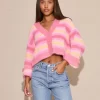 From morning beach walks to chilly nights by the fire, the Daybreak Sweater will be your constant companion as you transition from season to season. This cropped sweater comes in the yummiest shade of striped sherbet hues. Its relaxed silhouette and three buttons combine to make this our go-to cardigan. V neck Ribbed collar and cuffs Faux mohair 50% Acrylic 38% Nylon 12% Alpaca Style # ICNSW25