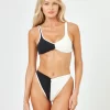What do you get when you combine a high-rise bikini bottom with our hot new ribbed collection? We’re calling these bikini bottoms the Jada. Bitsy coverage allows you to show off your stuff and ruching at the front brings a unique vibe. High leg High Waist Colorblock Twist Front Bitsy Size XS-XL 80% NYLON, 20% SPANDEX Like all delicates, shape, color, and fit are best preserved if hand washed in cold water. Lay flat to dry. Style # CBDJB24