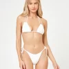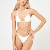 We took a classic triangle top and made it a micro. The Del Prado is our new itsy bikini top that features double halter straps that tie around the back for a fully adjustable fit. The creamy lace crochet layover fabric brings JVS’ signature California style to this limited edition capsule collection.